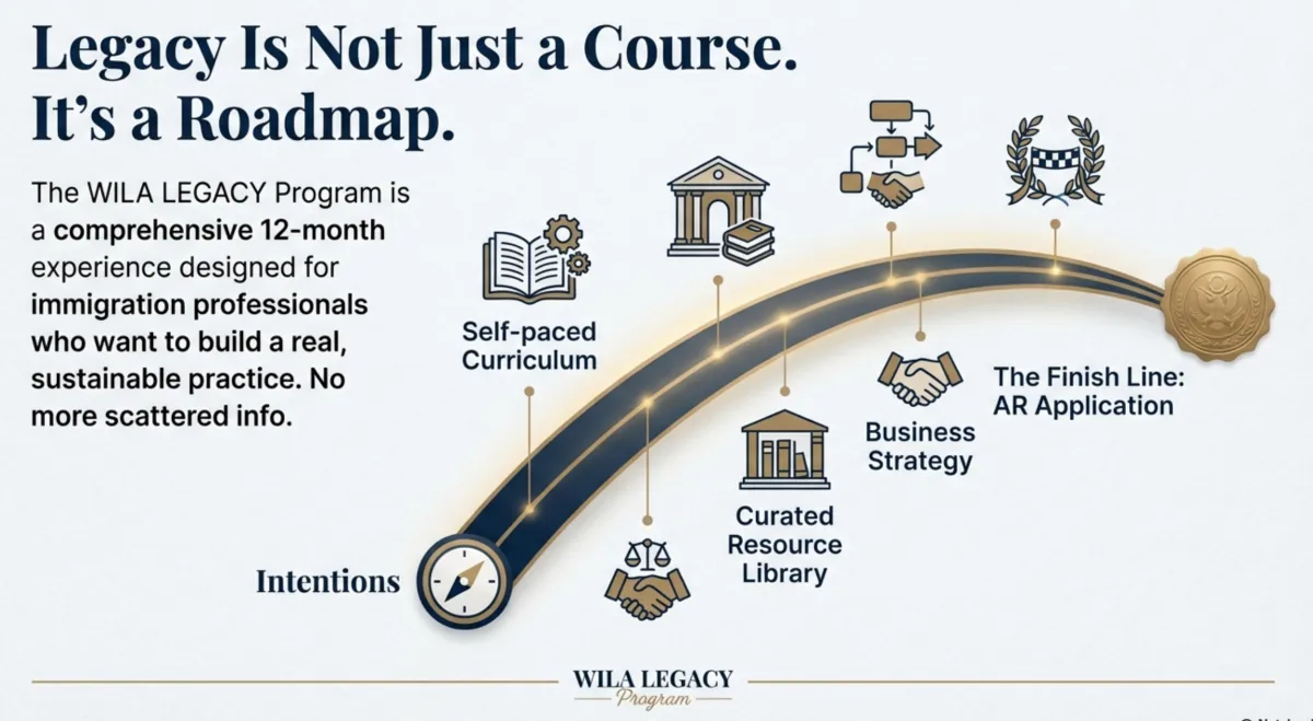 From overwhelmed immigration worker to recognized Accredited Representative with a compliant, profitable, story-driven practice — inside Wynter Immigration Law Academy’s LEGACY Program.